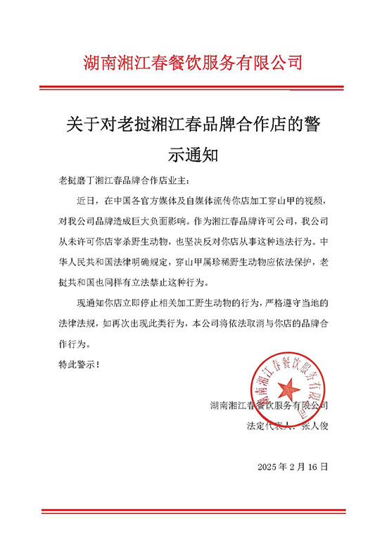 关于对老挝湘江春品牌合作店的警示通知